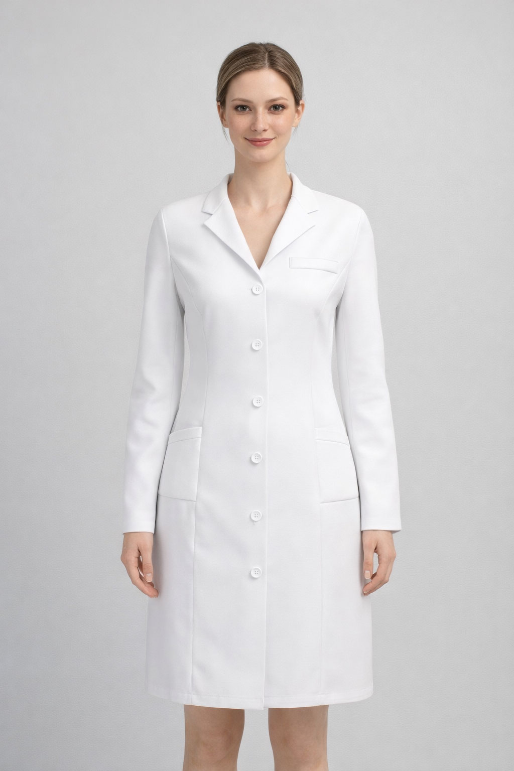 Классический белый медицинский халат на пуговицах, с длинными рукавами, прямого и слегка приталенного кроя. Халат оснащён удобными функциональными карманами и подходит для работы в медицинской среде, а также в других местах, где требуется смена рабочей одежды. Изготовлен из специальной медицинской ткани, которая отличается прочностью, воздухопроницаемостью и комфортом при длительном ношении.